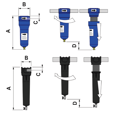 The strong mechanical resistance makes this filter the ideal initial protection of a compressed air system to retain impurities and, for example, it is suitable as a post-filter for adsorption dryers.